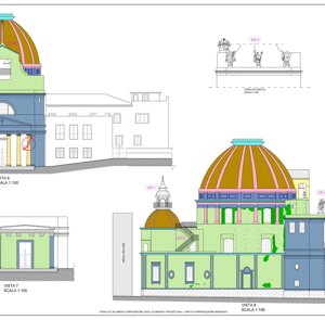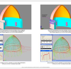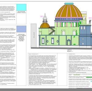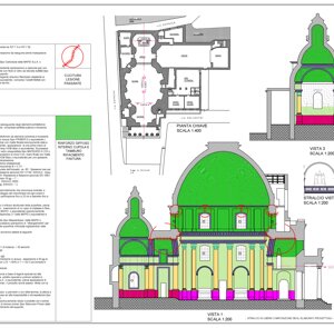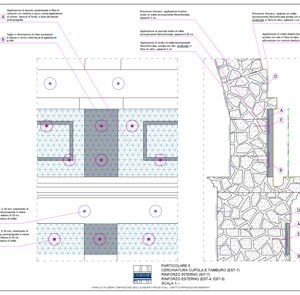Si pone in evidenza tra gli interventi del gruppo b) l'intervento di cerchiatura della cupola maggiore, tramite doppia cerchiatura con tessuto quadriassiale in fibra di carbonio ad alta resistenza tipo 760/48 con resistenza a trazione > 500 KN/m. Successiva formazione su lato esterno di tirantini anti-espulsivi, realizzati con inserimento in foro di fiocco di rete in fibra di carbonio e iniezione di malta.